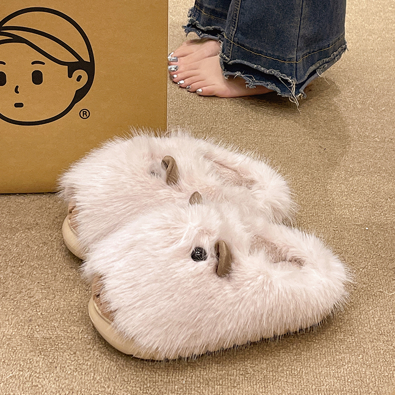 厚底保暖毛毛绒防滑月子棉鞋 棉拖鞋 2025新款 冬季 女士外穿 女款