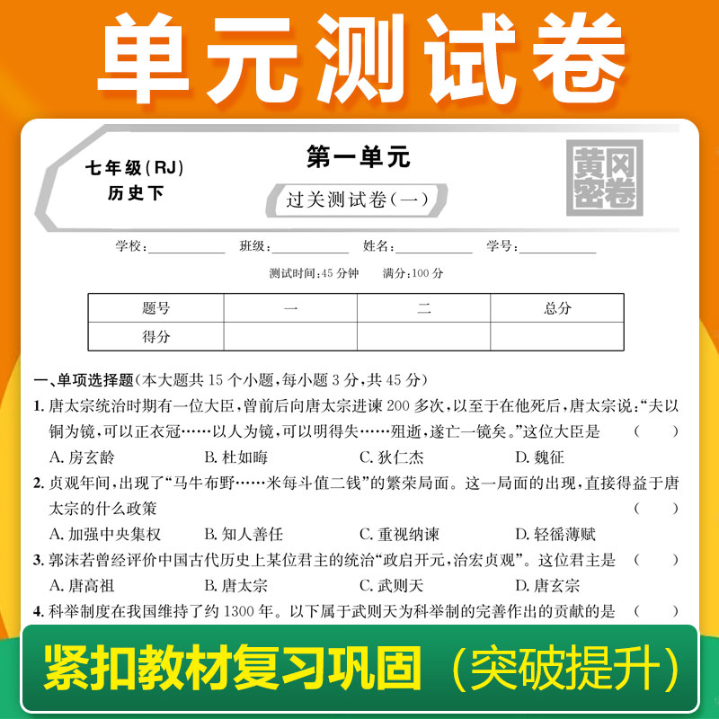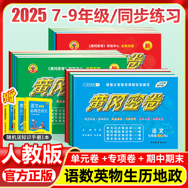 2025版 黄冈密卷王后雄七年级上册试卷测试卷全套八九年级下册全一册试卷语文数学英语历史地理生物初一二三期末冲刺模拟中考总复习