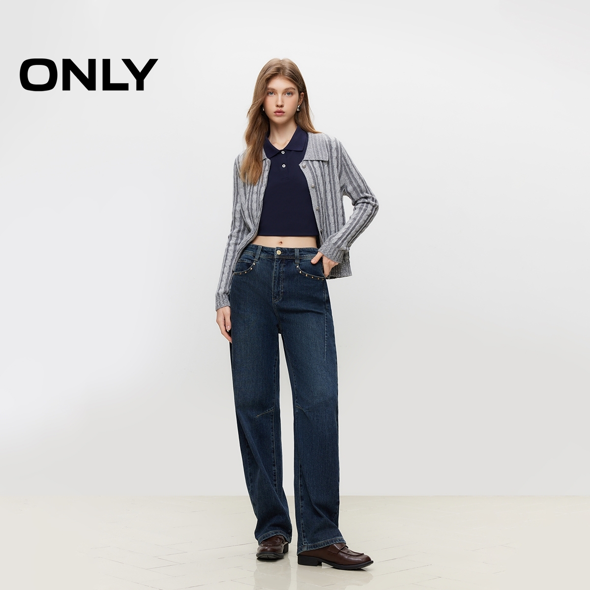 子女 宽松显瘦阔腿直筒牛仔裤 太平鸟复古高腰直筒牛仔裤 2025年秋季