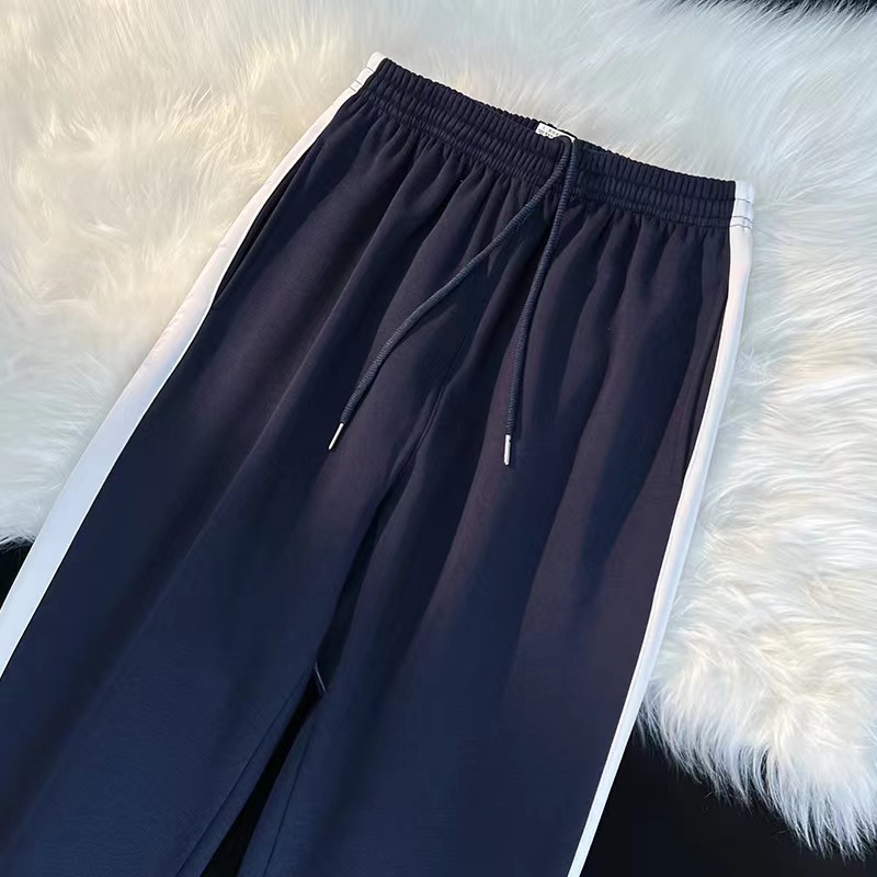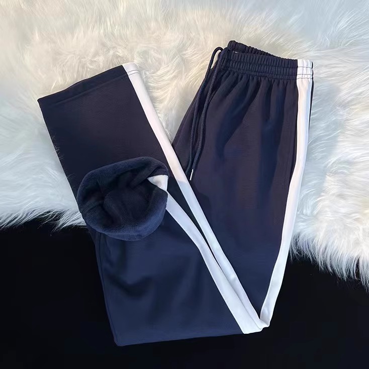 加绒校裤 校服裤 子一道杠束脚宽白条藏青色小学初中高中学生秋冬季