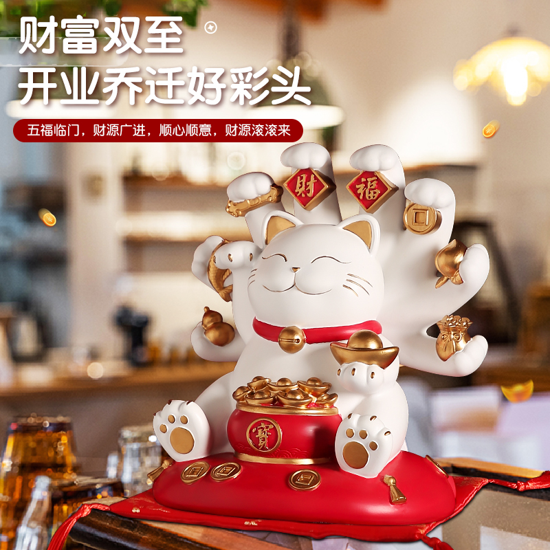 招财猫入户钥匙收纳玄关摆件门口鞋 饰品乔迁新居礼品 柜客厅家居装