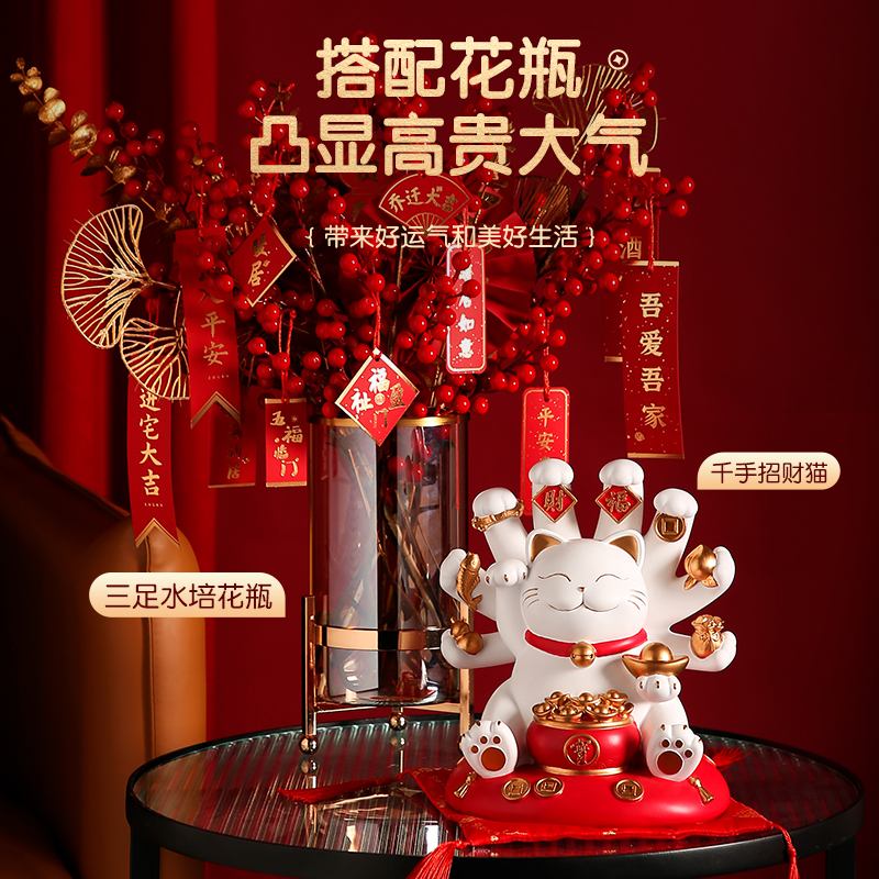 招财猫入户门口鞋 饰品摆件客厅家居乔迁新居礼品 柜钥匙收纳玄关装