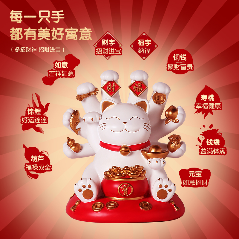 创意招财猫钥匙收纳玄关摆件入户鞋 饰品新居入宅搬家礼物 柜客厅装