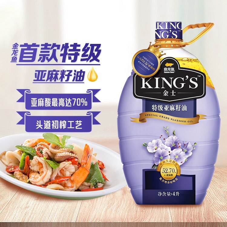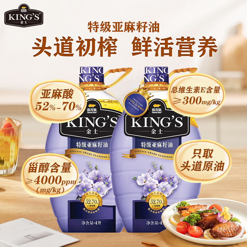 S特级压榨亚麻籽油4L 金龙鱼金士KING 2桶胡麻油 蜜蜂惊喜社