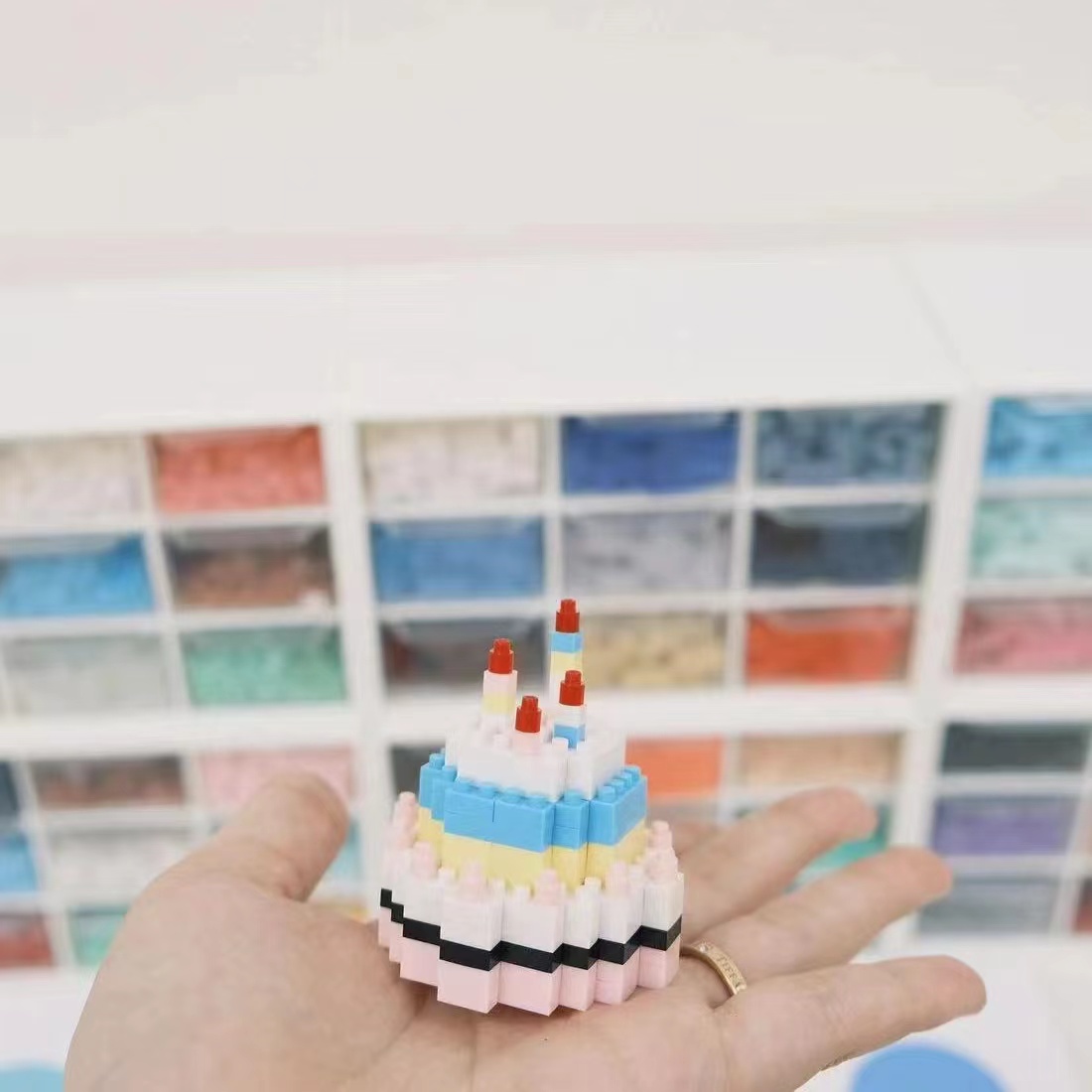 潮乐创生日蛋糕积木DIY拼装 益智玩具男女孩生日礼物桌面摆件拼图