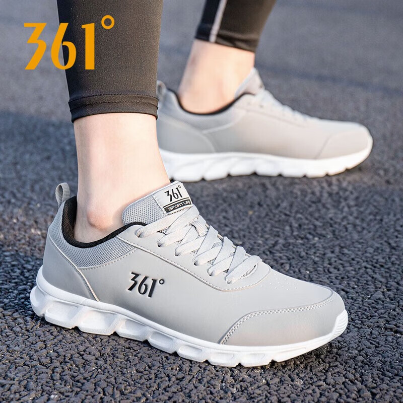 男士 男秋季 保暖361度加绒皮面防水鞋 子正品 男 361男鞋 跑步鞋 运动鞋