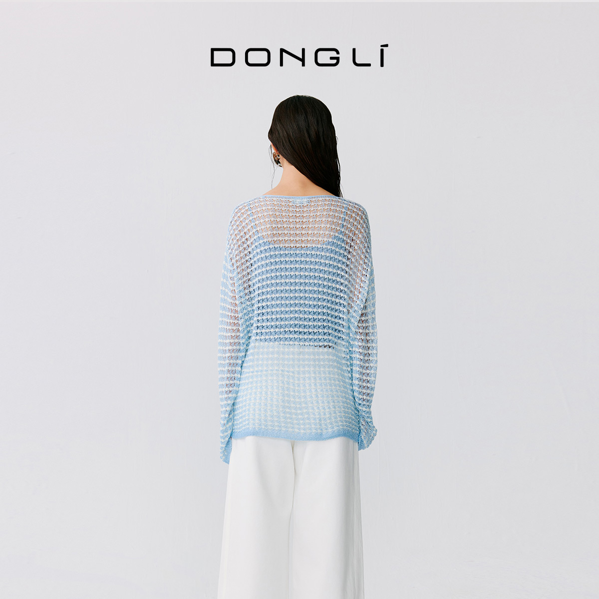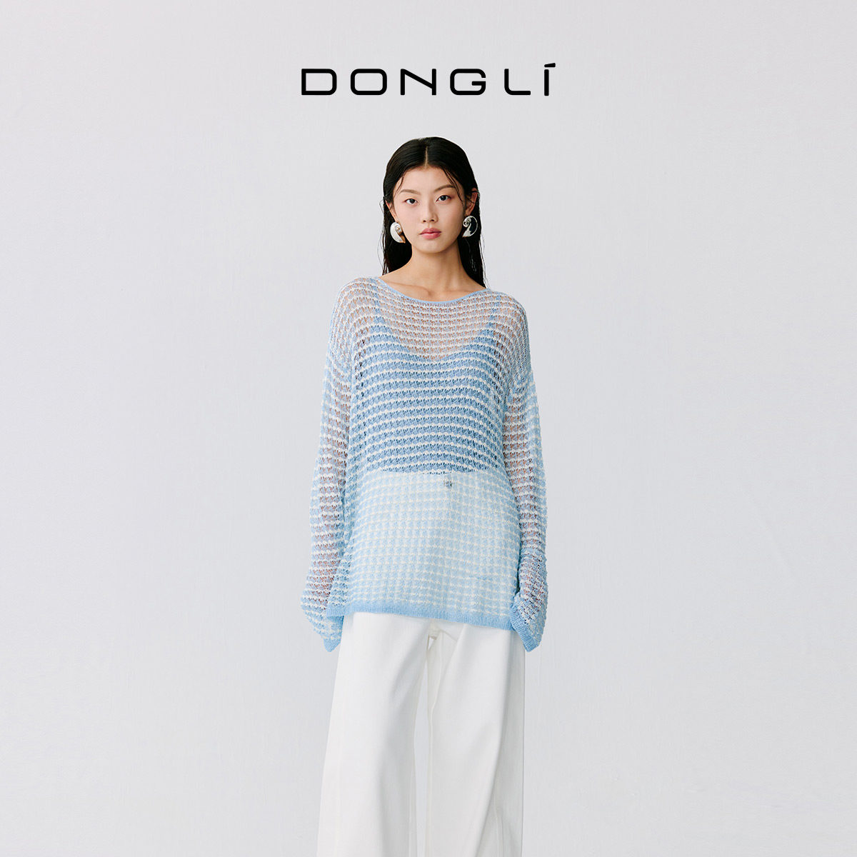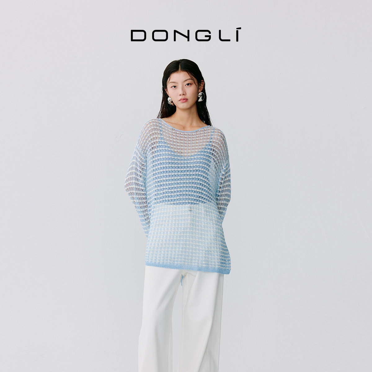 灵镂澜影 海风 桑蚕丝山羊绒夏季 条纹镂空套衫 5338 东黎 女 温柔