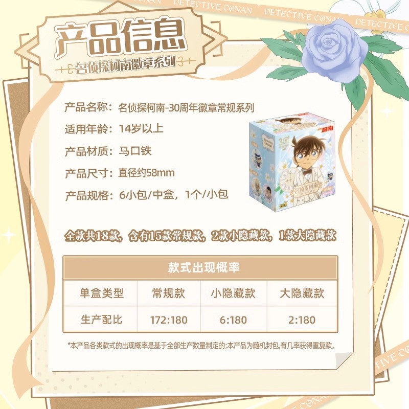 卡游名侦探柯南徽章30周年吧唧盲盒怪盗基德周边谷子胸章正残像