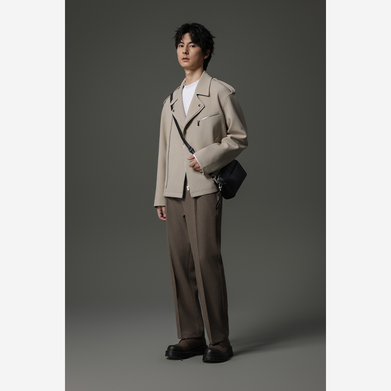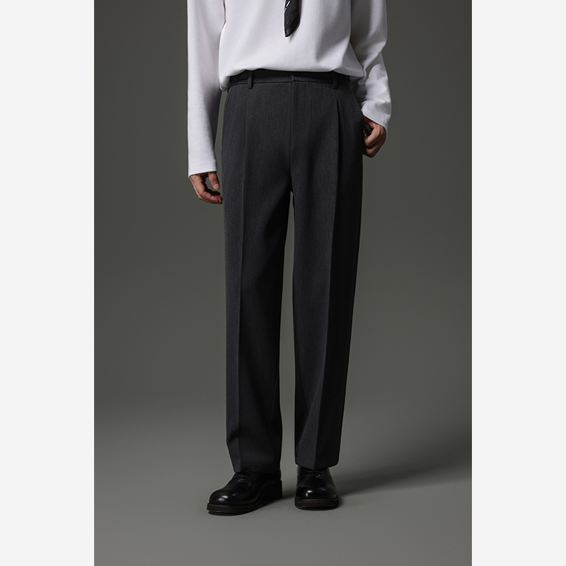 垂感挺阔加厚休闲裤 直筒宽松西裤 男单褶腰绊装 2025秋季 饰长裤 新款