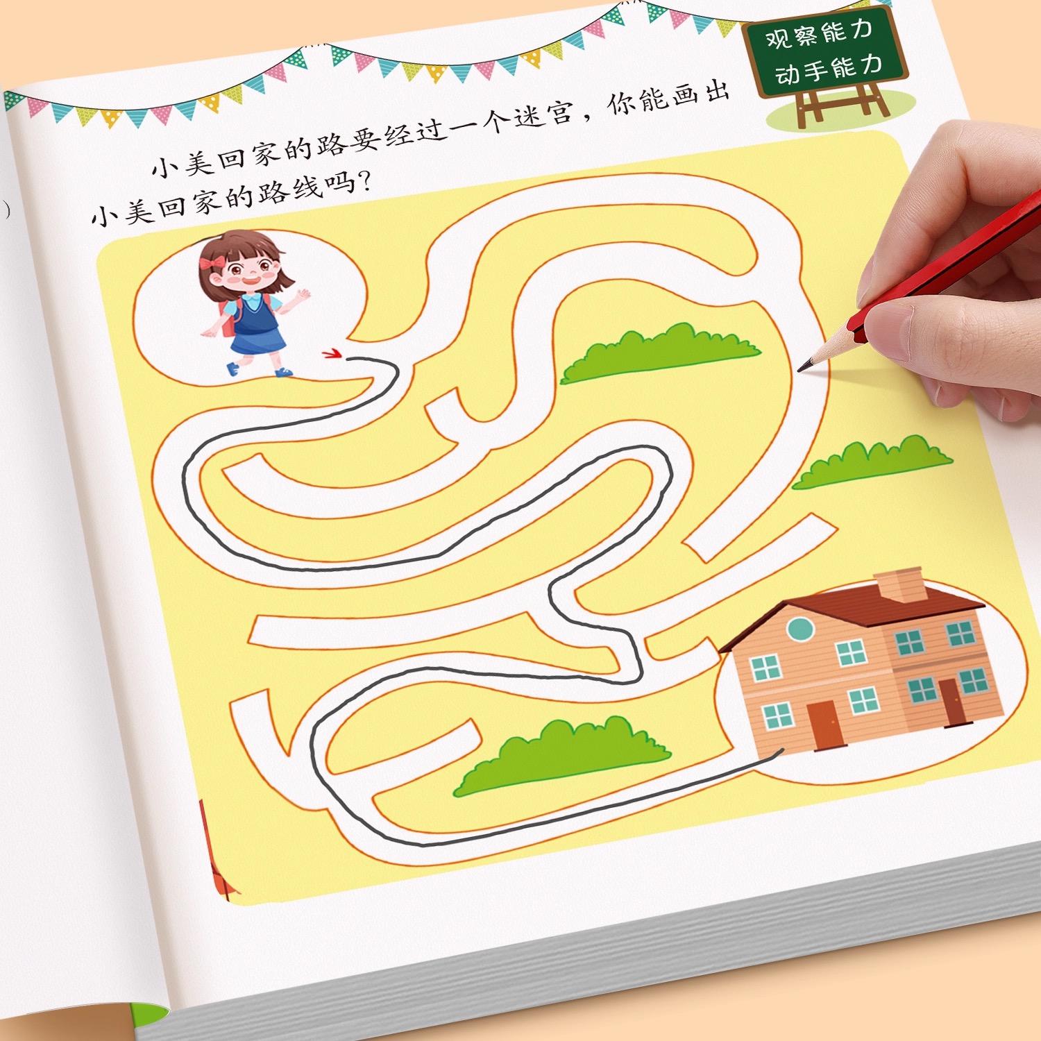 儿童左右脑开发全脑思维逻辑训练 6两三四岁宝宝儿童益智游戏书大班中班小班智力开发专注力迷宫连线数学启蒙早教认知绘本