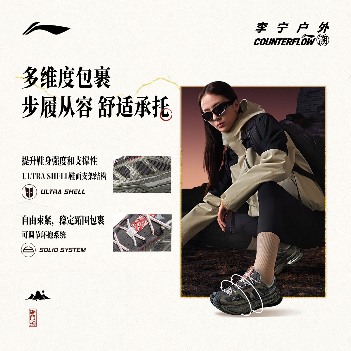 男女稳定防泼水防滑登山鞋 李宁户外CF溯行川徒步鞋 双11预售