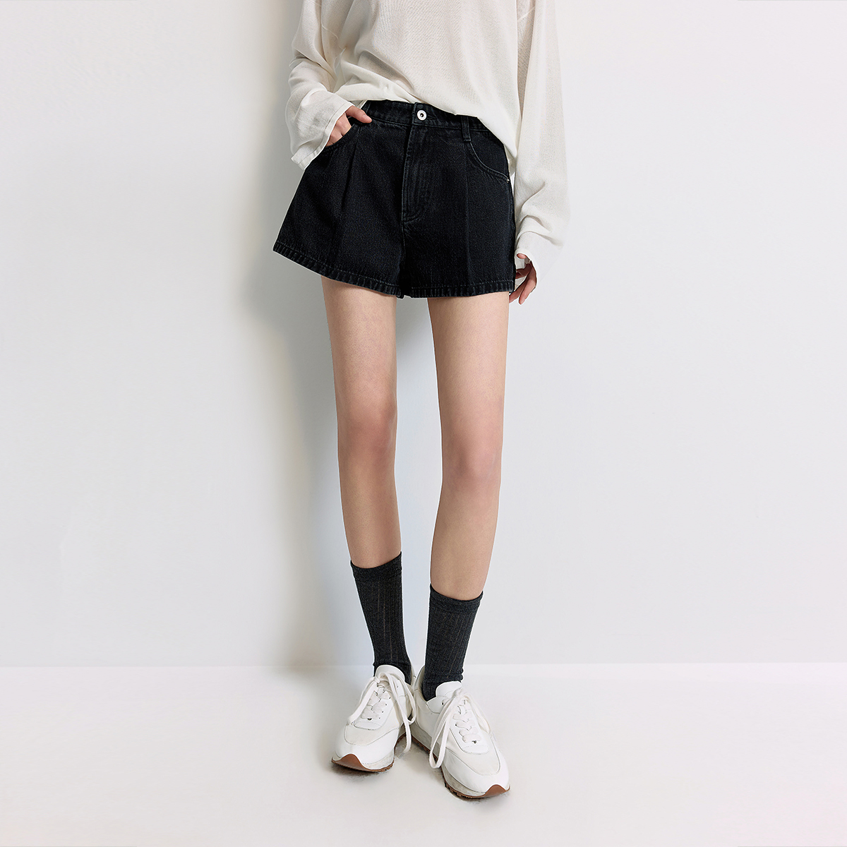 女a字显瘦休闲2025早秋新品 OCHIRLY欧时力 立体收褶直筒牛仔短裤