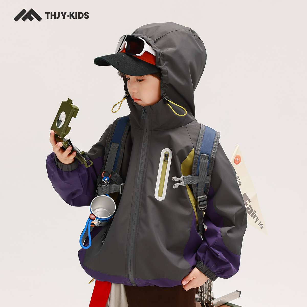 连帽防风上衣 儿童中大童男孩春秋款 男童冲锋衣外套2025秋装 新款