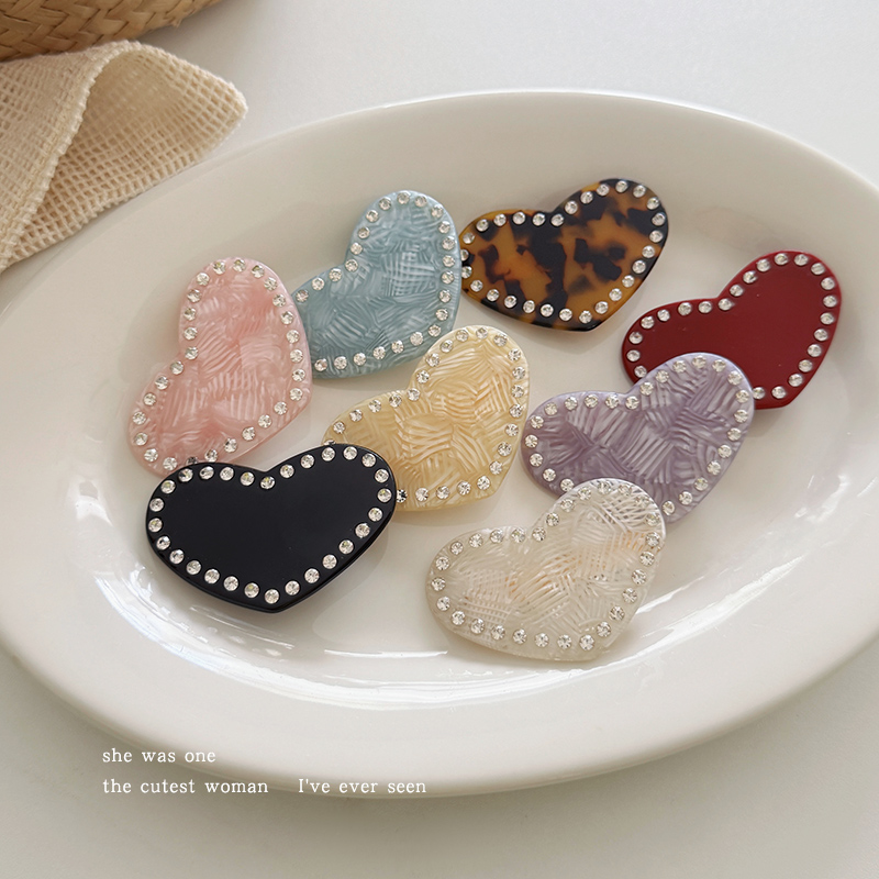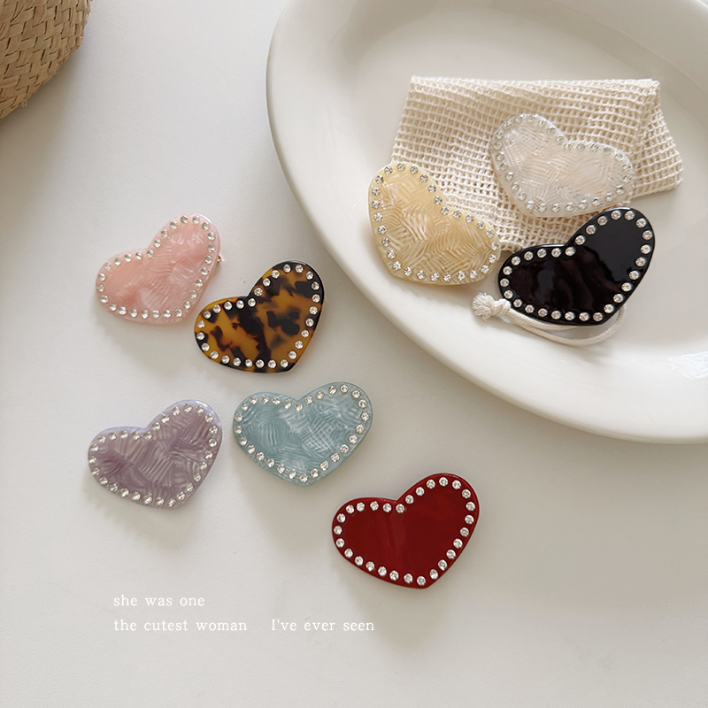 刘亦菲同款 爱心镶钻发夹女碎发刘海夹侧边夹子醋酸头饰一字夹发卡