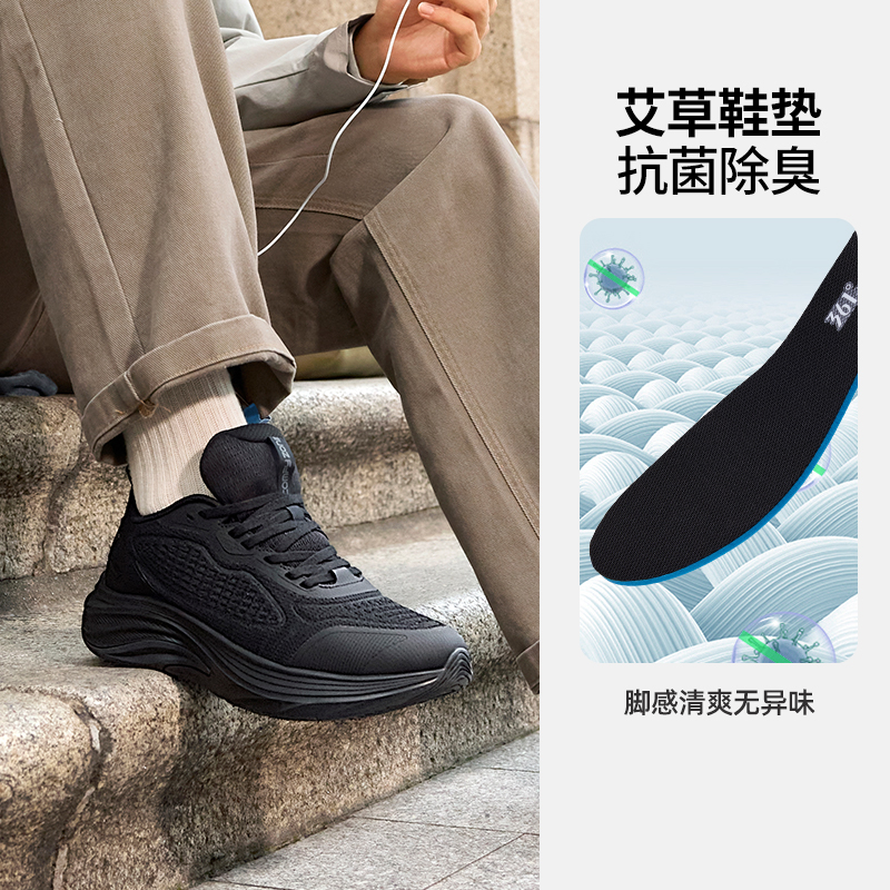 新款 秋季 防泼水运动鞋 雨天通勤鞋 男 361男鞋 黑色宽楦慢跑鞋 跑步鞋
