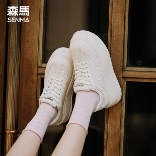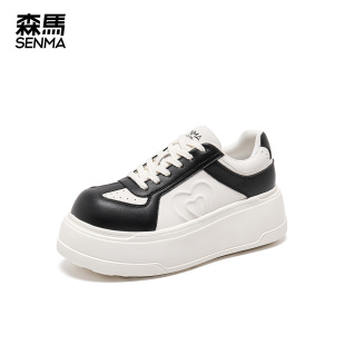 女鞋 2025秋季 女松糕厚底老爹百搭运动鞋 休闲皮面防水防滑板鞋 新款