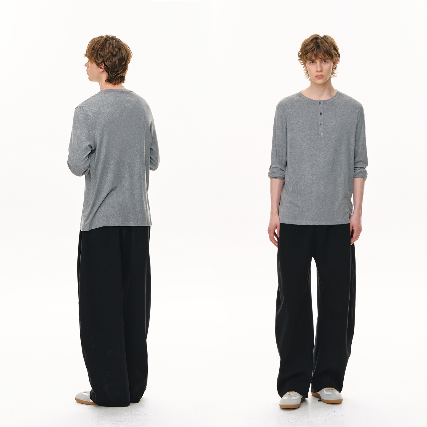 亨利领休闲打底长袖 软糯舒适k皱 T恤 VISION兰精天丝羊毛 CLIMAX