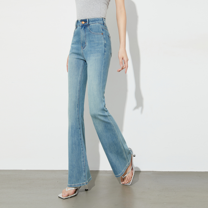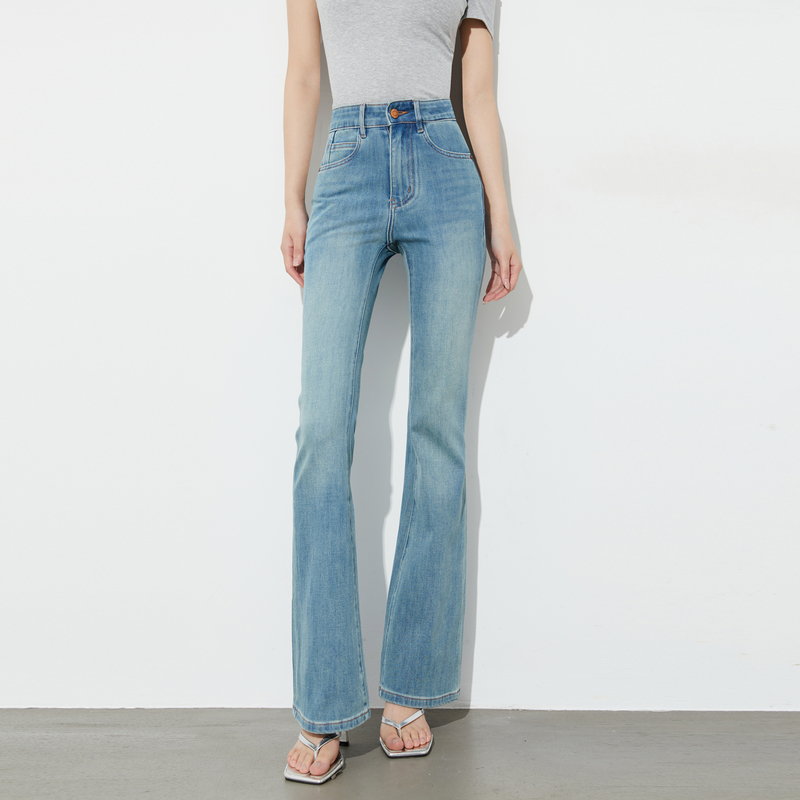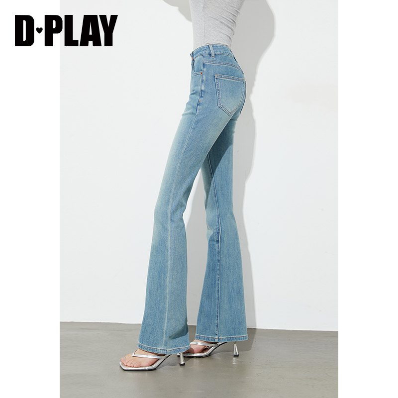 流行百搭长裤 DPLAY2025秋季 女高腰显瘦微喇裤 复古蓝色牛仔裤 新款
