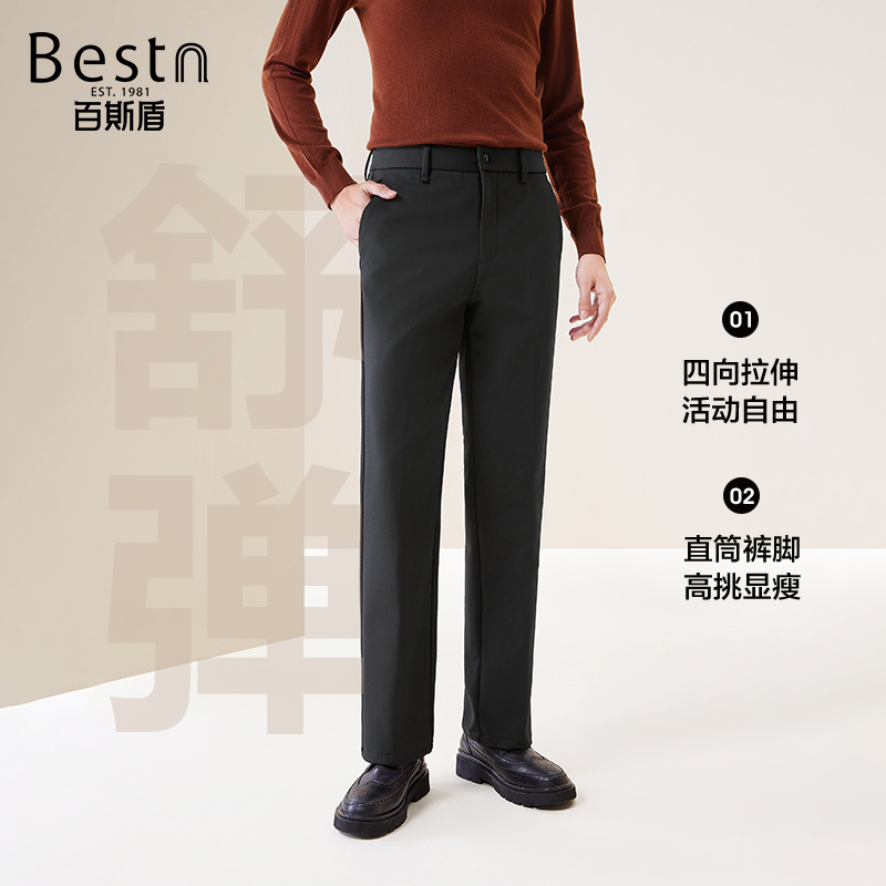 微弹商务黑色直筒长裤 HLA 新款 25秋冬季 子男 海澜之家易打理休闲裤