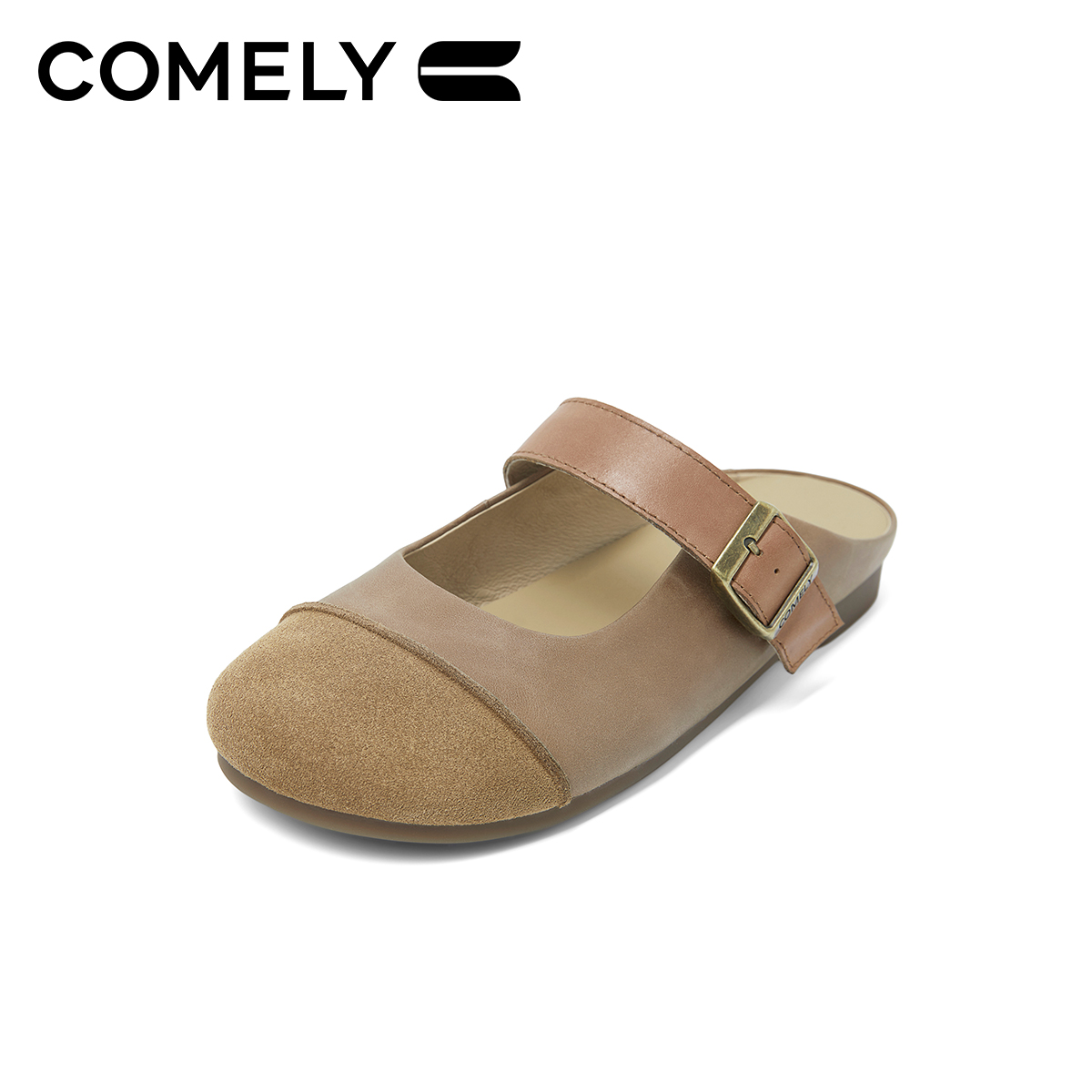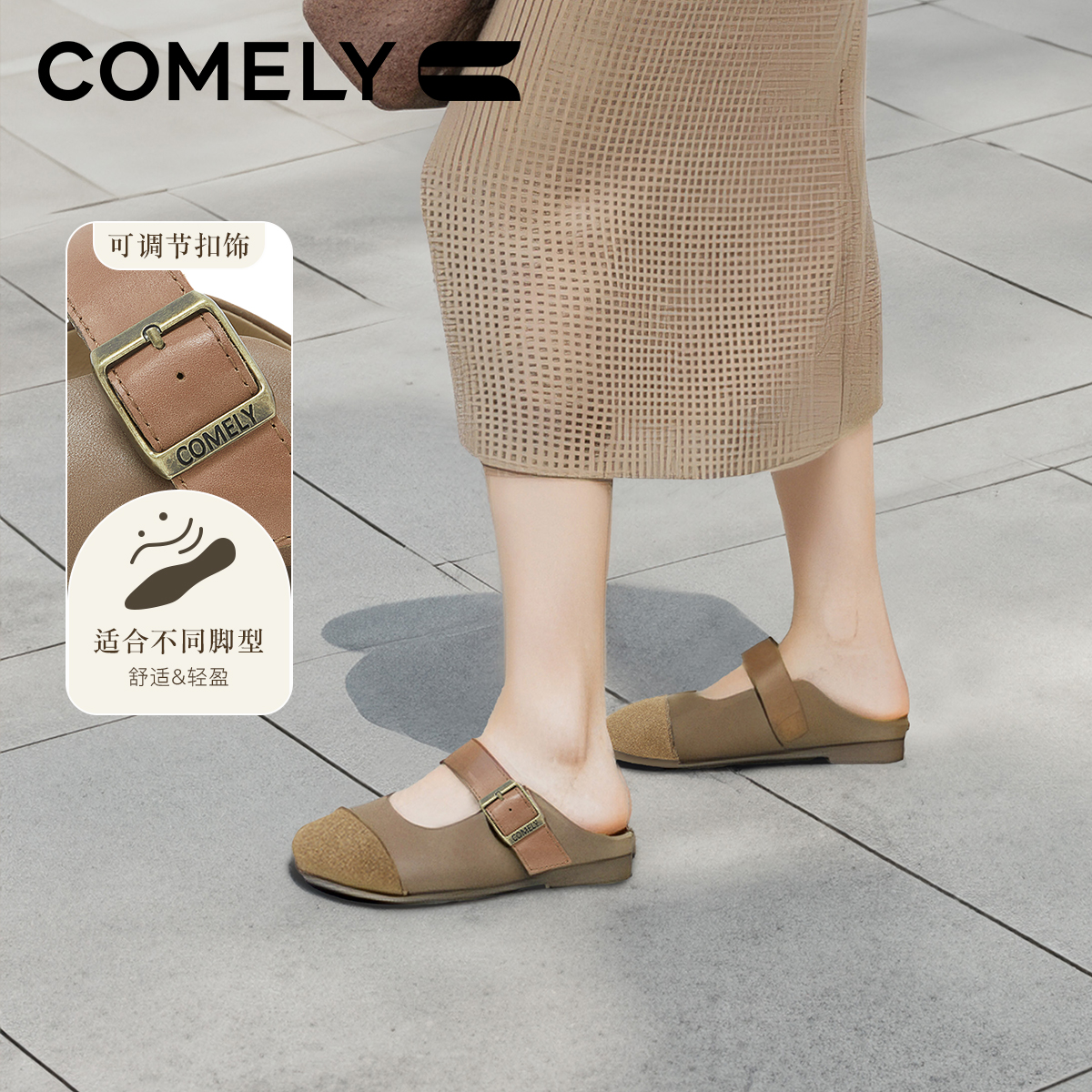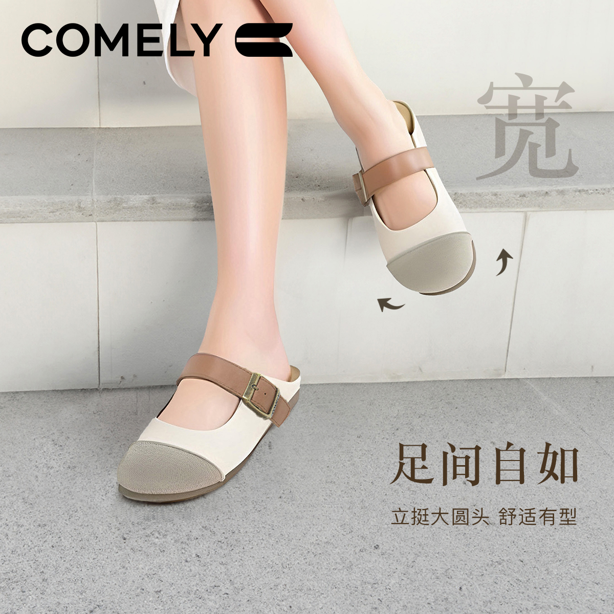 不累脚包头凉鞋 康莉真皮穆勒鞋 勃肯半拖鞋 春夏季 女平底2025年新款