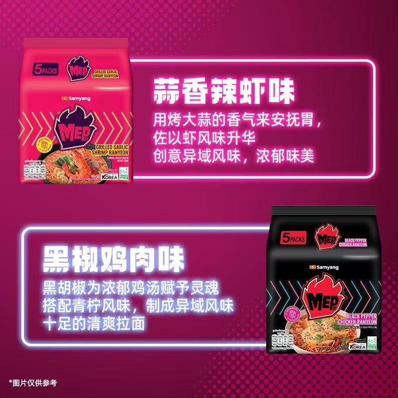 清仓直播 蒜香鲜虾味 三养MEP方便面 黑椒鸡肉味 80G