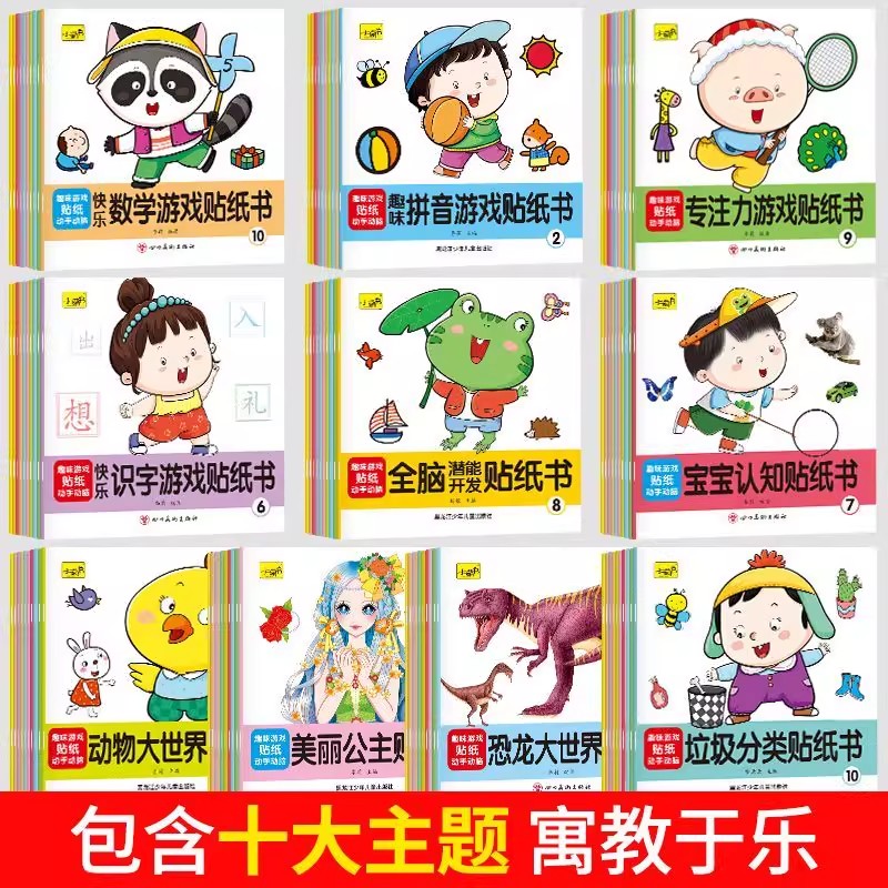 5岁粘贴纸早教0到3岁到6岁启蒙认知书手工拼音 6岁全脑开发贴贴画儿童益智全脑逻辑思维训练幼儿园宝宝1 专注力游戏贴纸书2