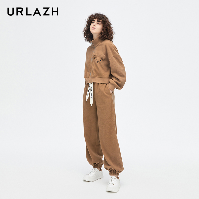 复古棕色运动卫裤 URLAZH有兰新款 浅棕色宽松直筒休闲裤