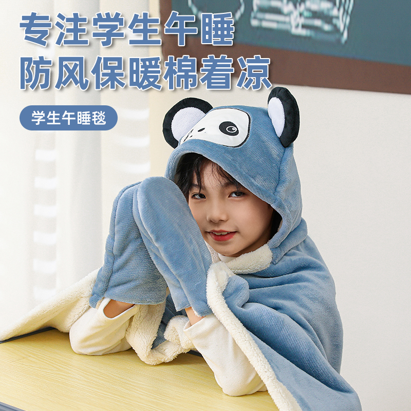 加厚儿童午睡毯子小学生教室用抱枕斗篷午休神器披肩毛毯盖被秋冬