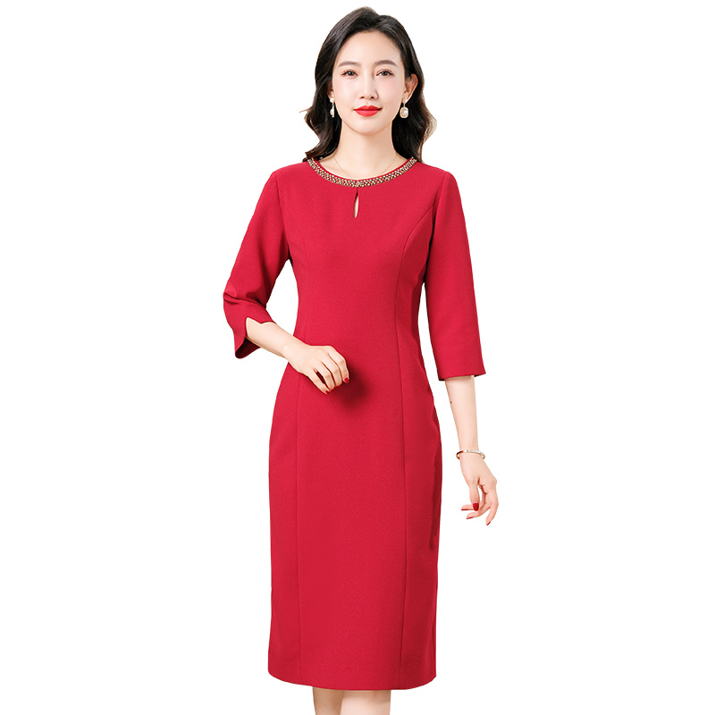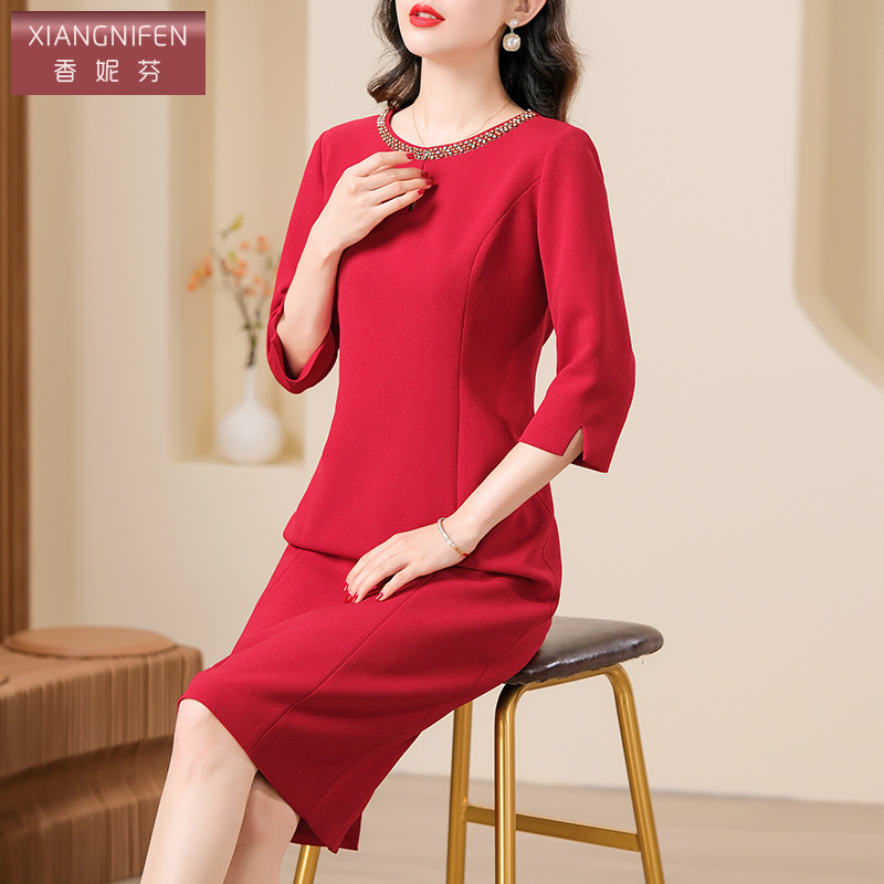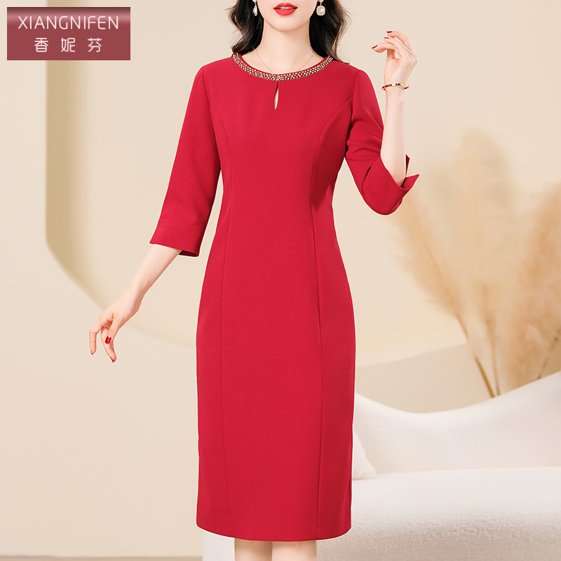 中长款 菲梦伊钉珠连衣裙女短袖 高级感别致独特修身 法式 礼服裙 夏季
