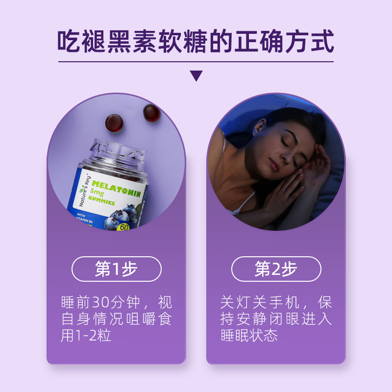 60粒 美国NaturesKey自然之钥褪黑素睡眠软糖维生素B6正品 自营