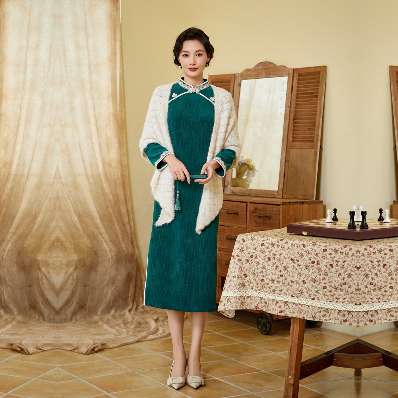 修身 固执秋季 立领灯芯绒长袖 中式 改良旗袍30734QP08658 新款