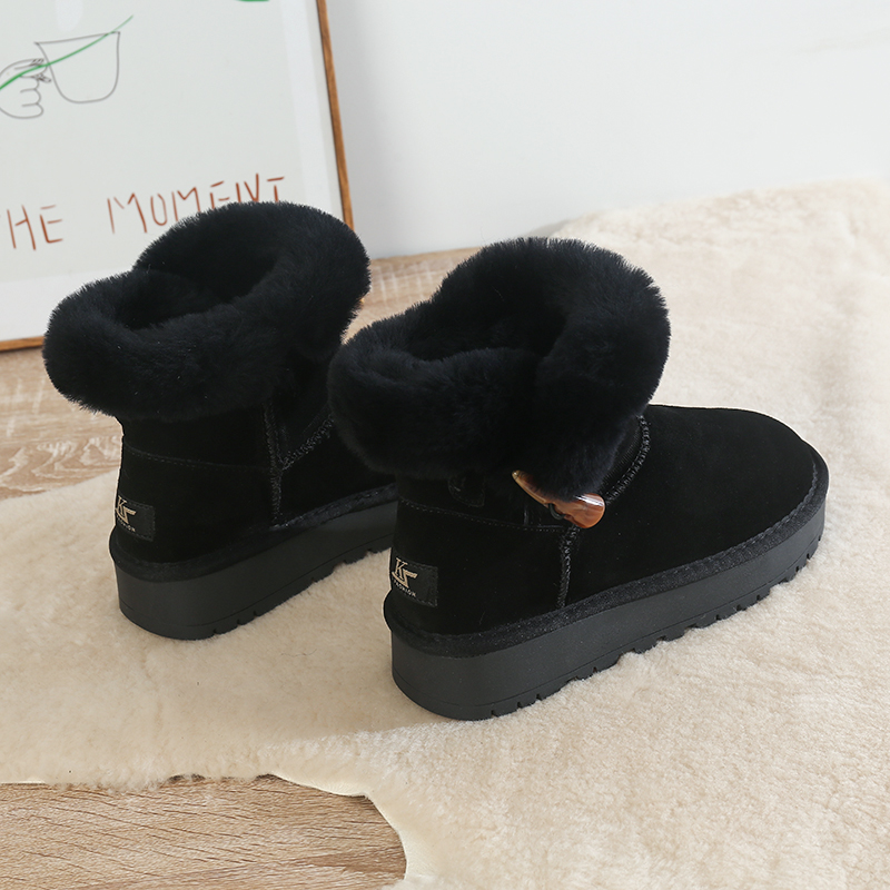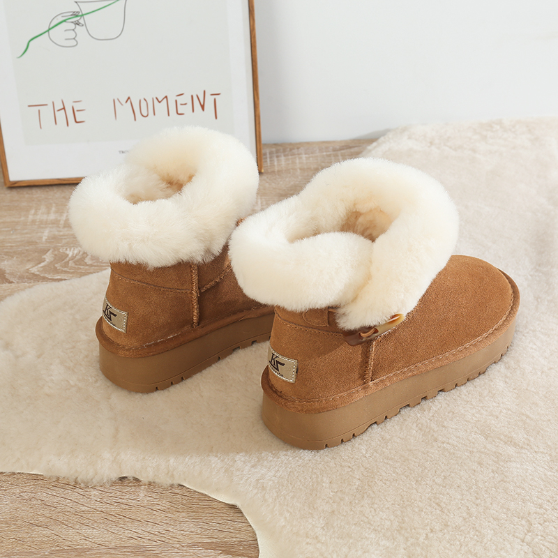 皮毛一体牛皮短筒防滑厚底加绒加厚保暖棉鞋 雪地靴女2023新款 冬季