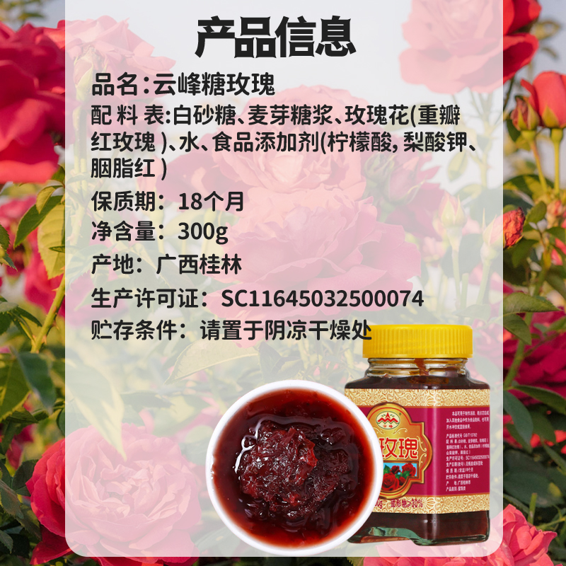 云峰糖玫瑰300g桂林特产正宗玫瑰桂花酱蜜鲜花酱甜品烘焙花酿玫瑰