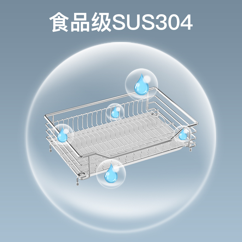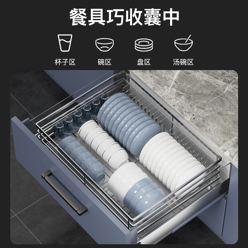 抽屉内置304不锈钢拉篮免安装 台面置物碗碟盘架带接水盘厨房橱柜