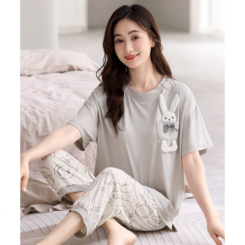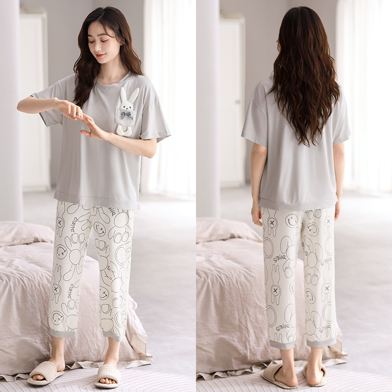 夏天冰丝凉感夏款 带胸垫睡衣女士夏季 薄款 七分裤 家居服 莫代尔短袖