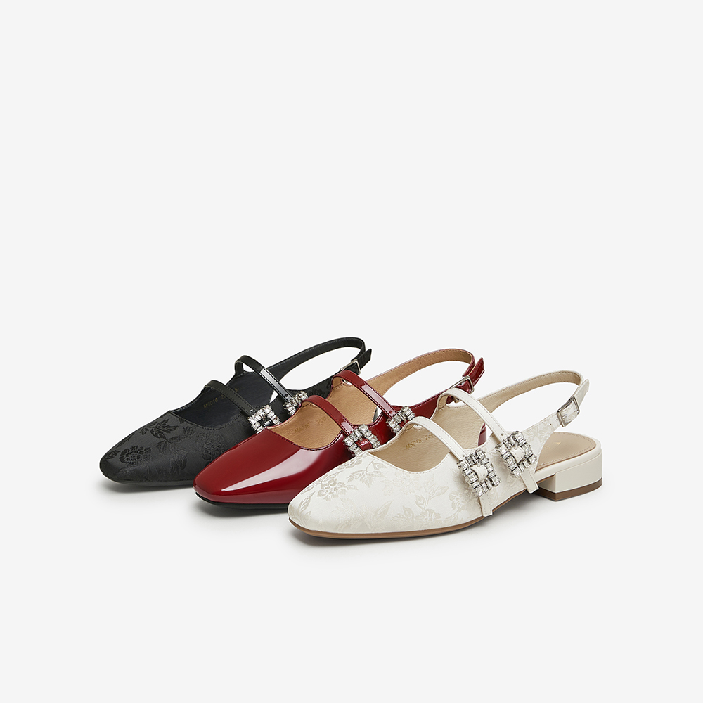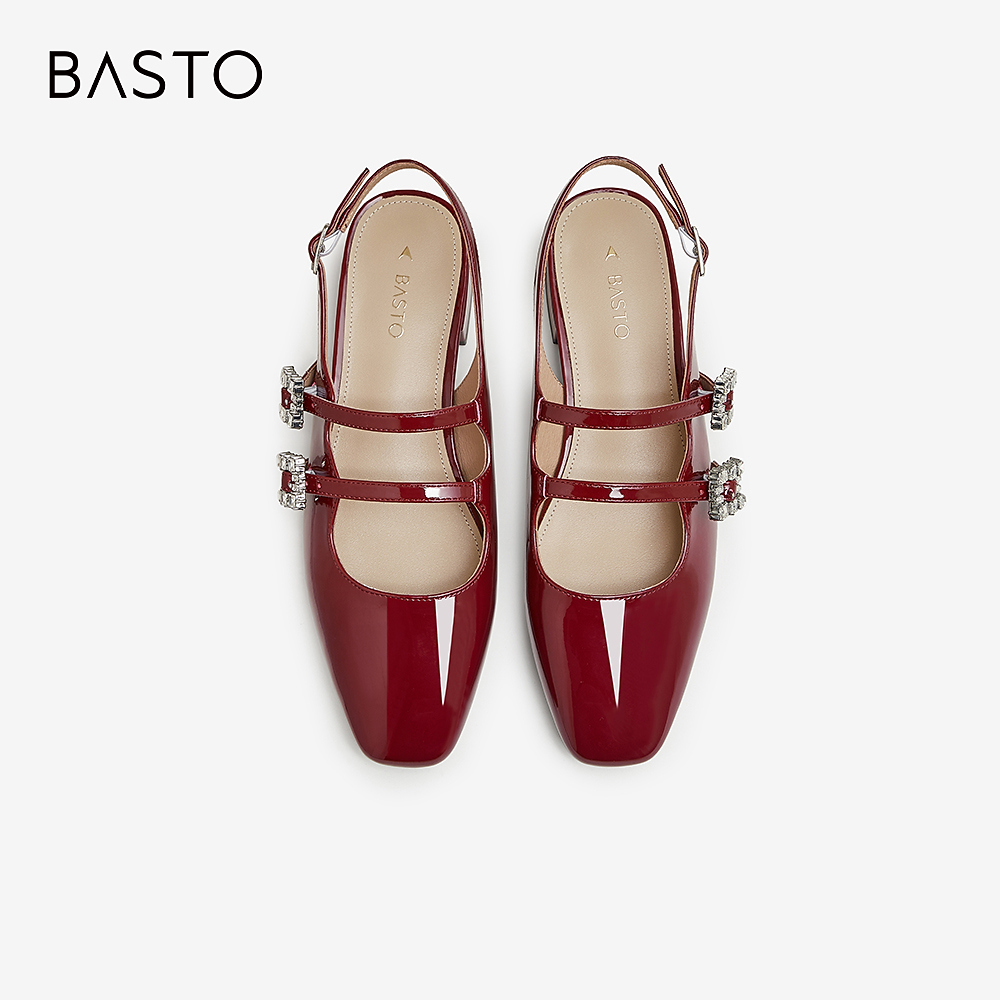 简约复古方头粗跟后空女凉鞋 时尚 M5016BH4 新款 百思图春夏季