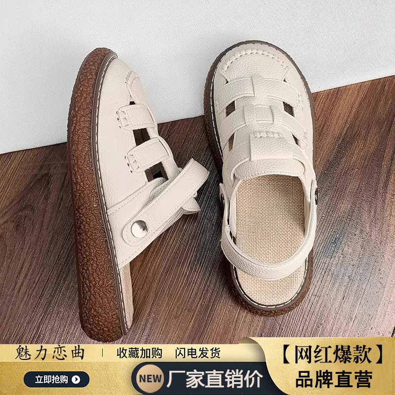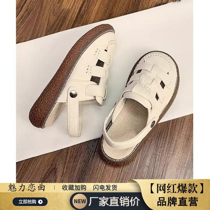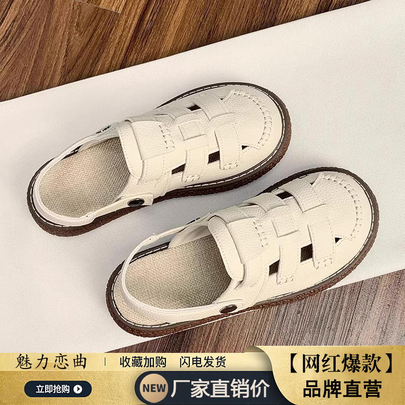 女款 外穿洞洞鞋 2025年新款 孕妇一脚蹬半拖鞋 夏季 两穿罗马包头凉鞋