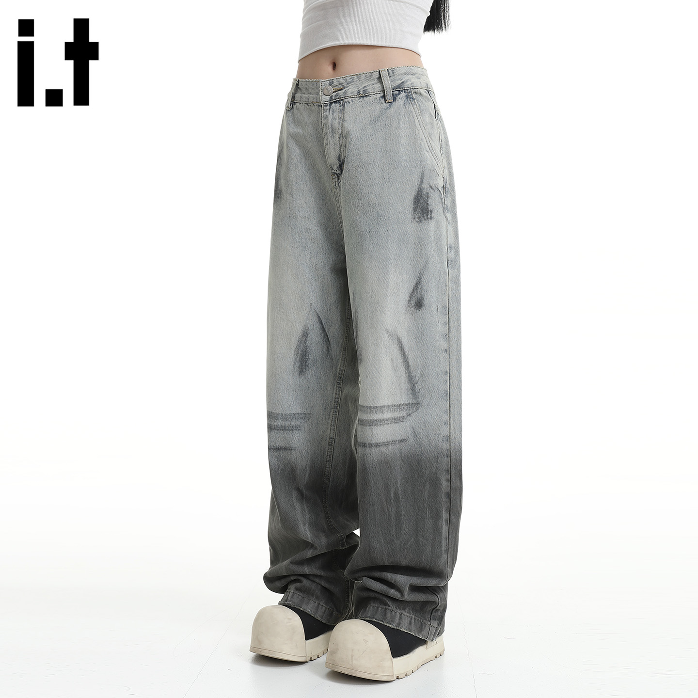 潮牌渐变阔腿牛仔裤 FIVECM美式 男女款 2025新款 宽松直筒裤 5cm