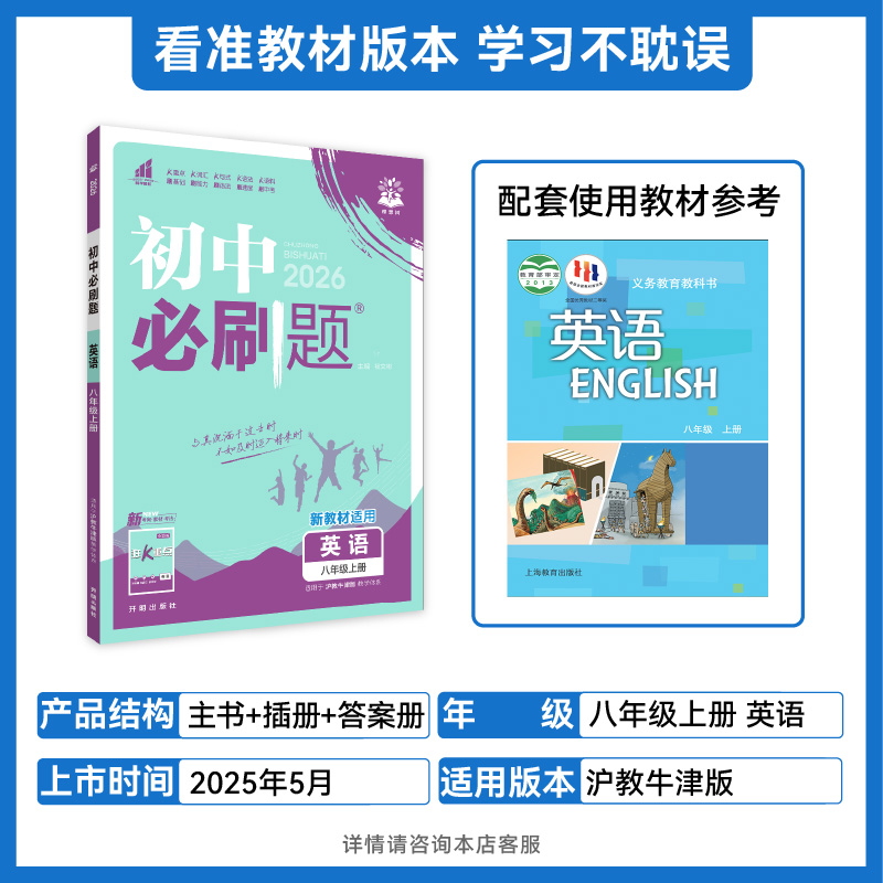 理想树初中必刷题 沪牛版 八年级上册 课本同步练习题 英语 2026版