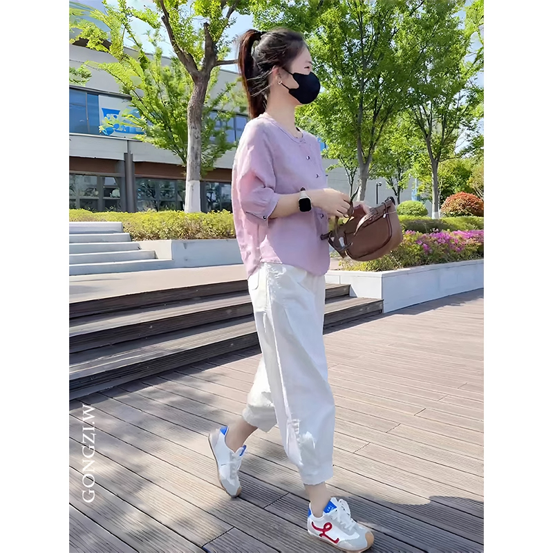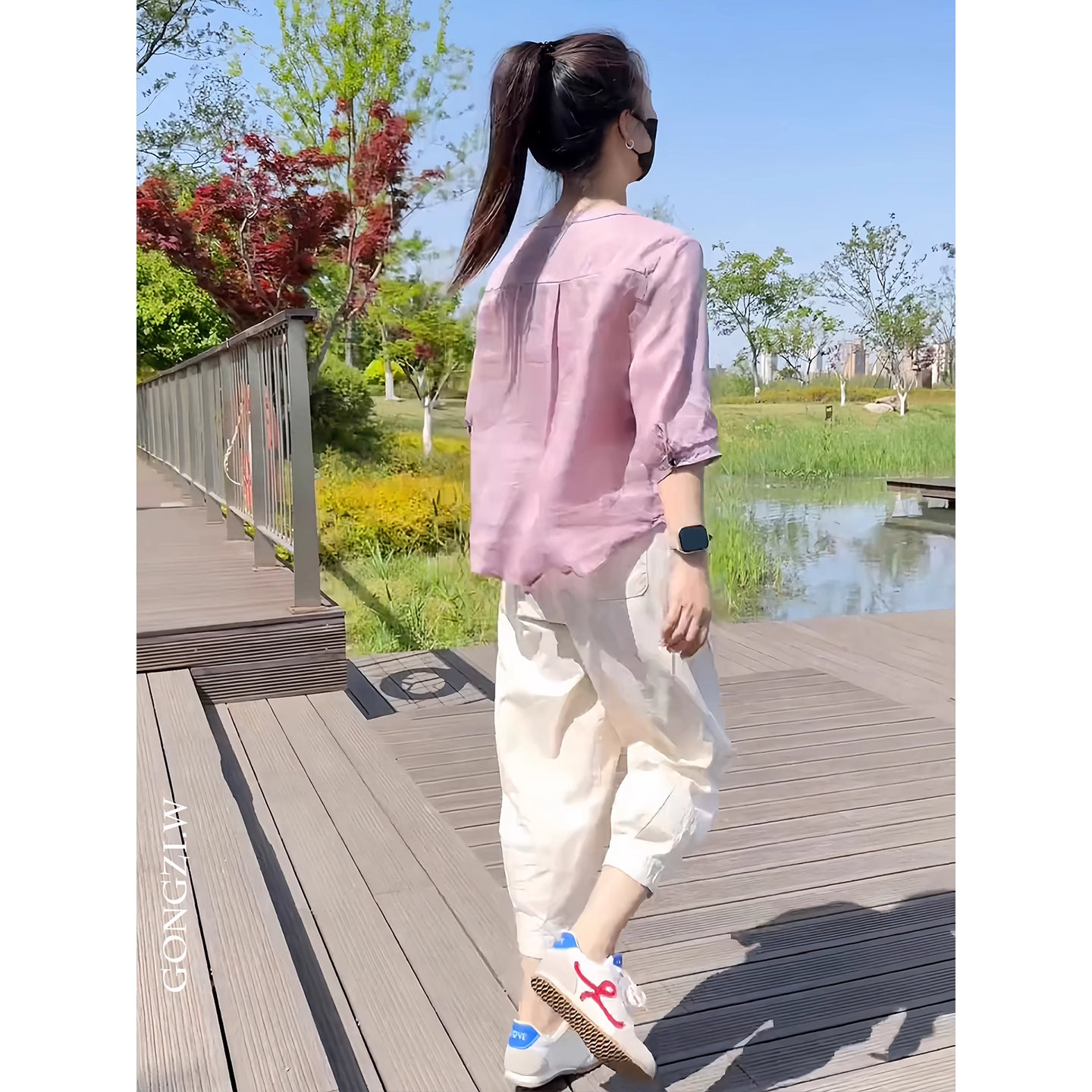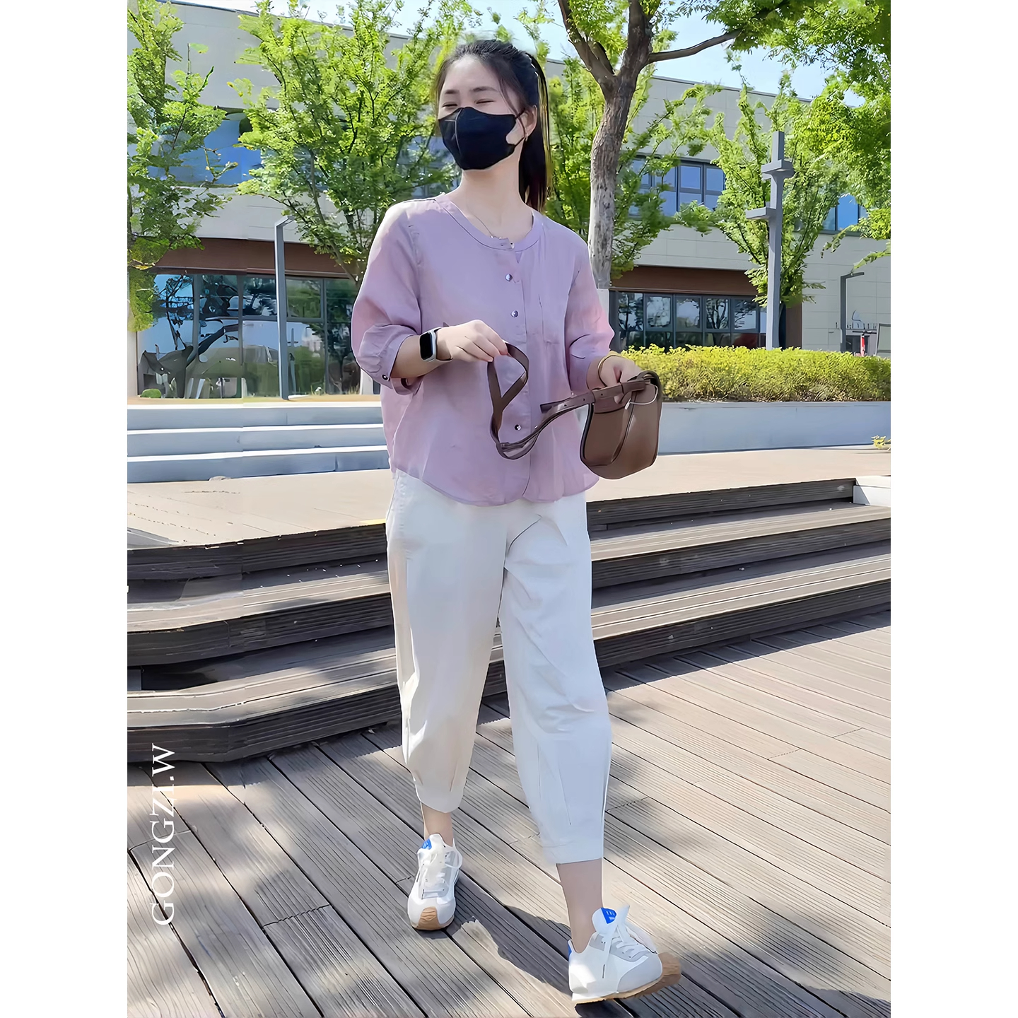 阔腿显瘦休闲哈伦裤 女装 衬衫 轻奢高级感女人味气质薄款 两件套 套装