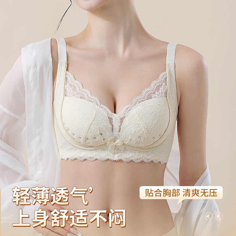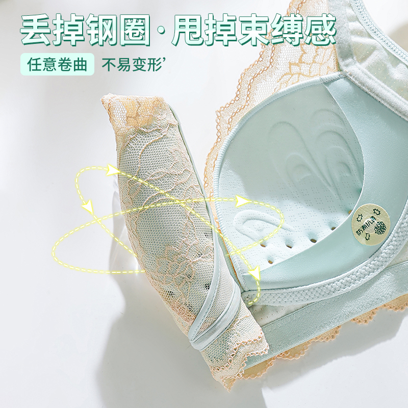 ubras浪花边性感无钢圈舒适收副乳无痕升杯小胸聚拢内衣文胸罩女
