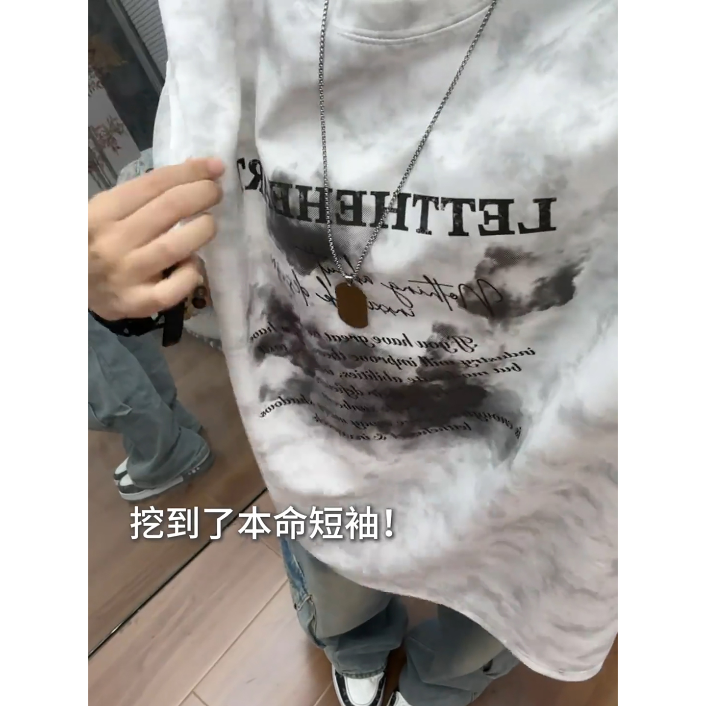 复古oversize情侣半袖 美式 痞帅高级感短袖 重磅扎染印花t恤男夏季
