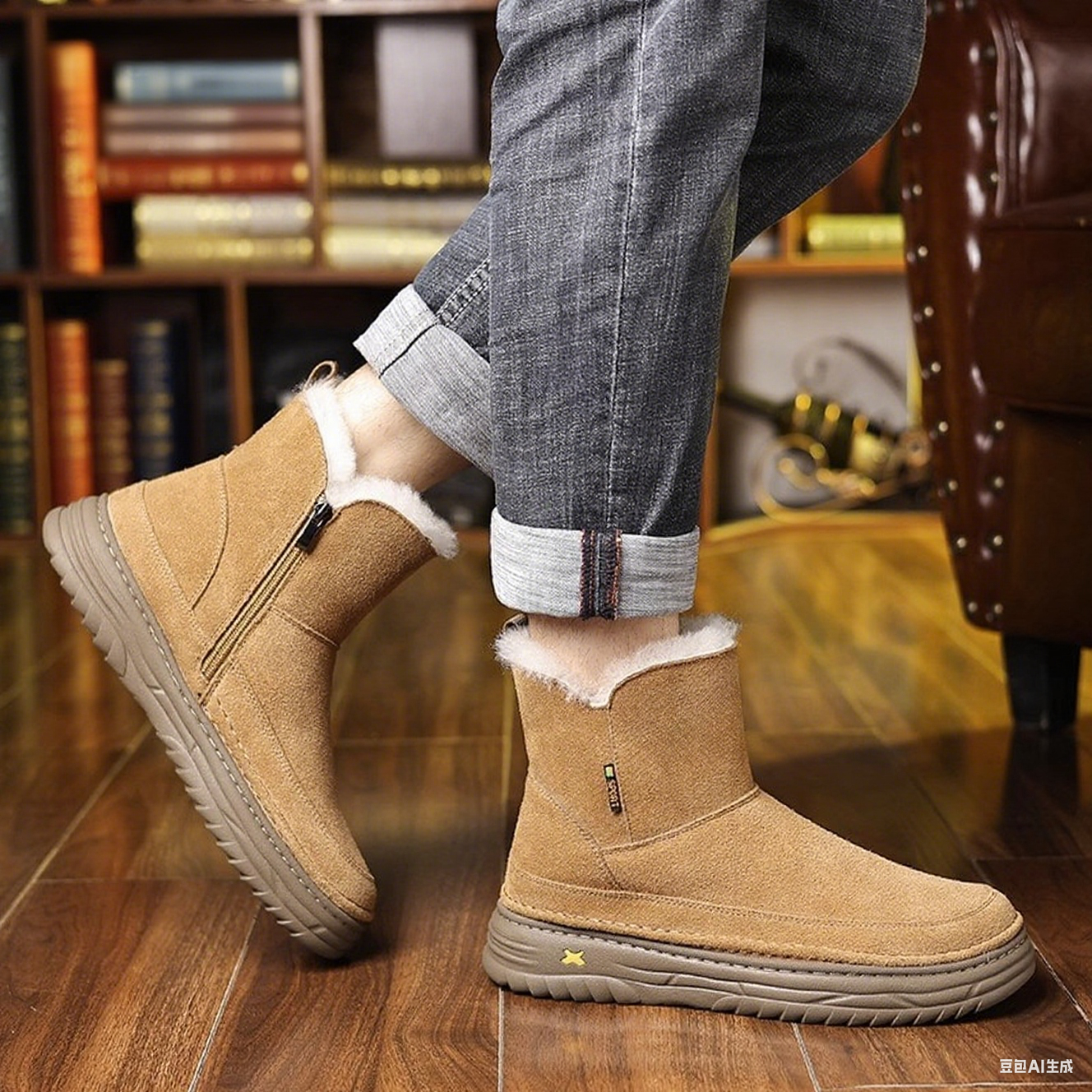 雪地靴男 加绒加厚保暖羊毛皮毛一体男士 雪地靴男冬季 东北高帮男鞋