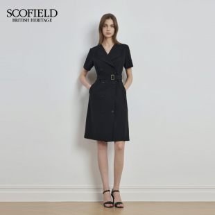 连衣裙戗驳领可调节腰带2025秋冬新品 Scofield女装 职场双排扣西装