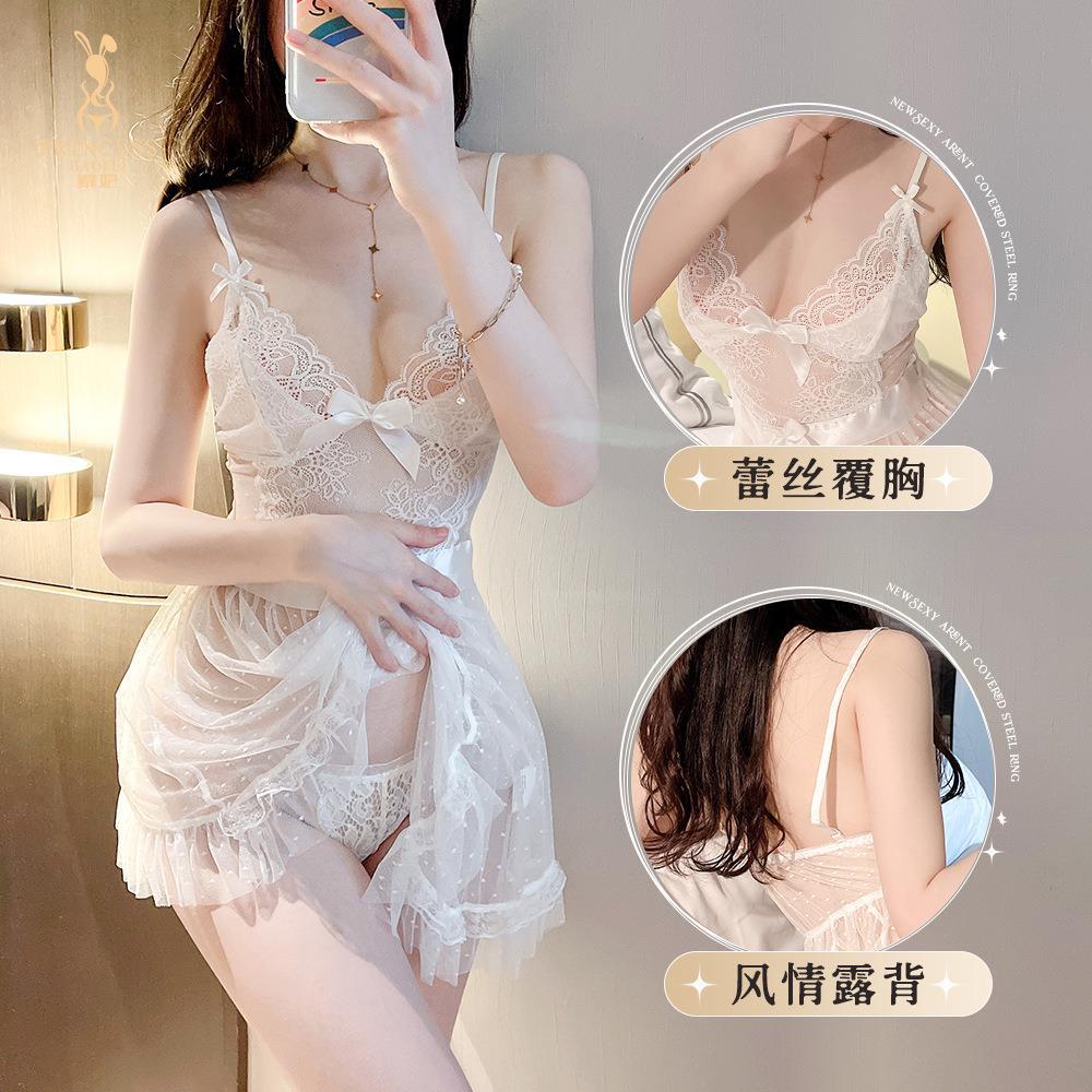 性感睡衣女2025年春夏季 纯欲风冰丝绸带胸垫蕾丝吊带睡裙睡袍 新款