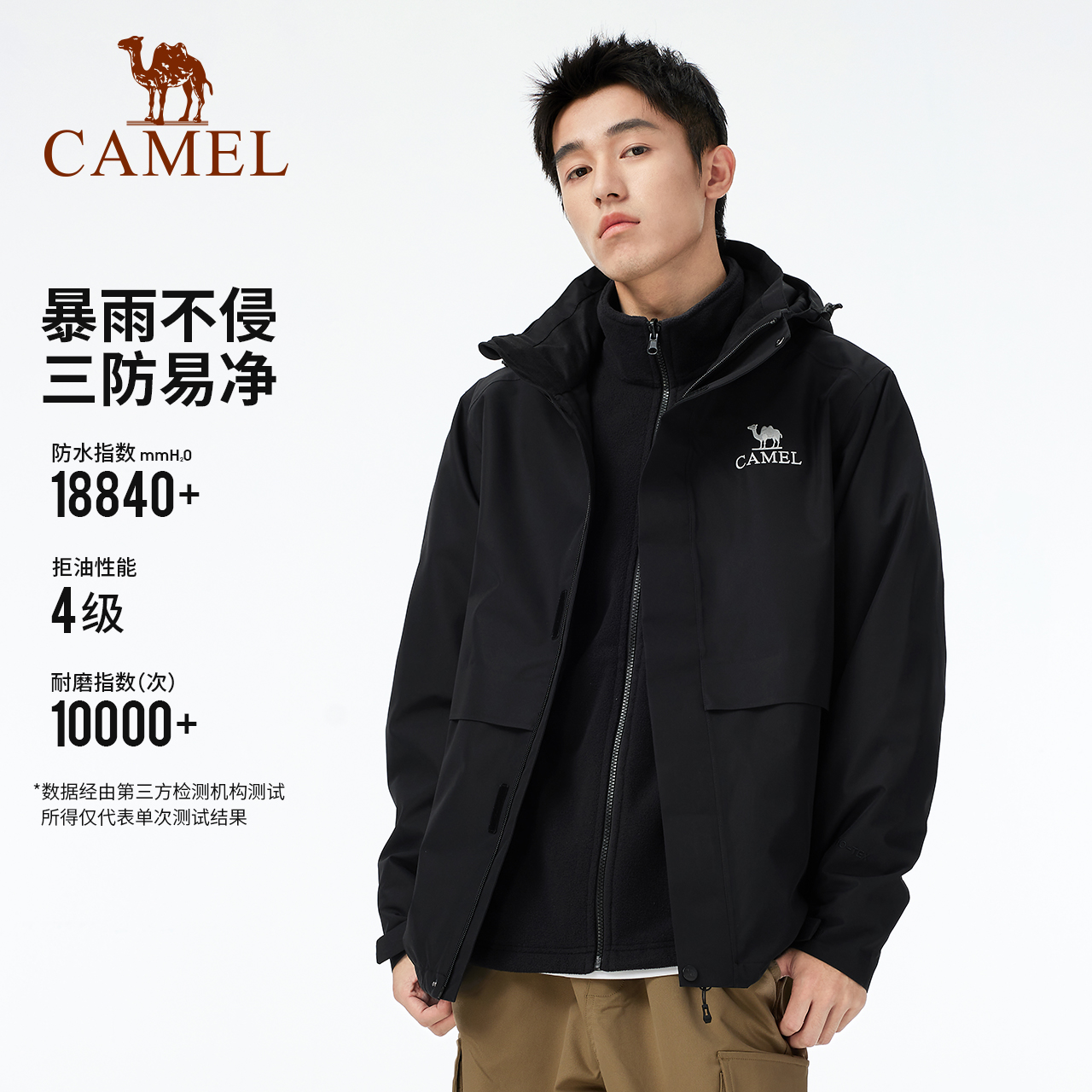 新款 户外冲锋夹克衣服秋季 罗蒙男士 可拆内胆外套 一衣三穿三防