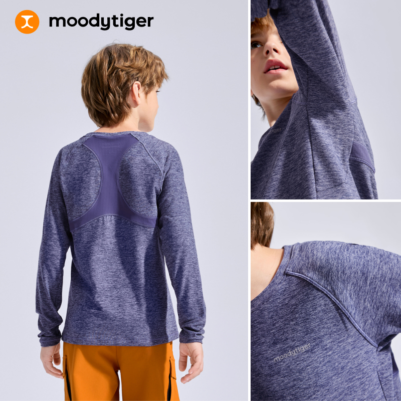 高弹插肩袖 T恤25秋季 moodytiger男童运动长袖 上衣 预售