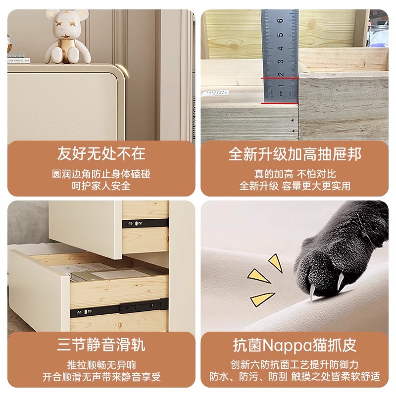 奶油风床头柜现代简约小型床边柜儿童卧室床头置物架收纳储物柜子
