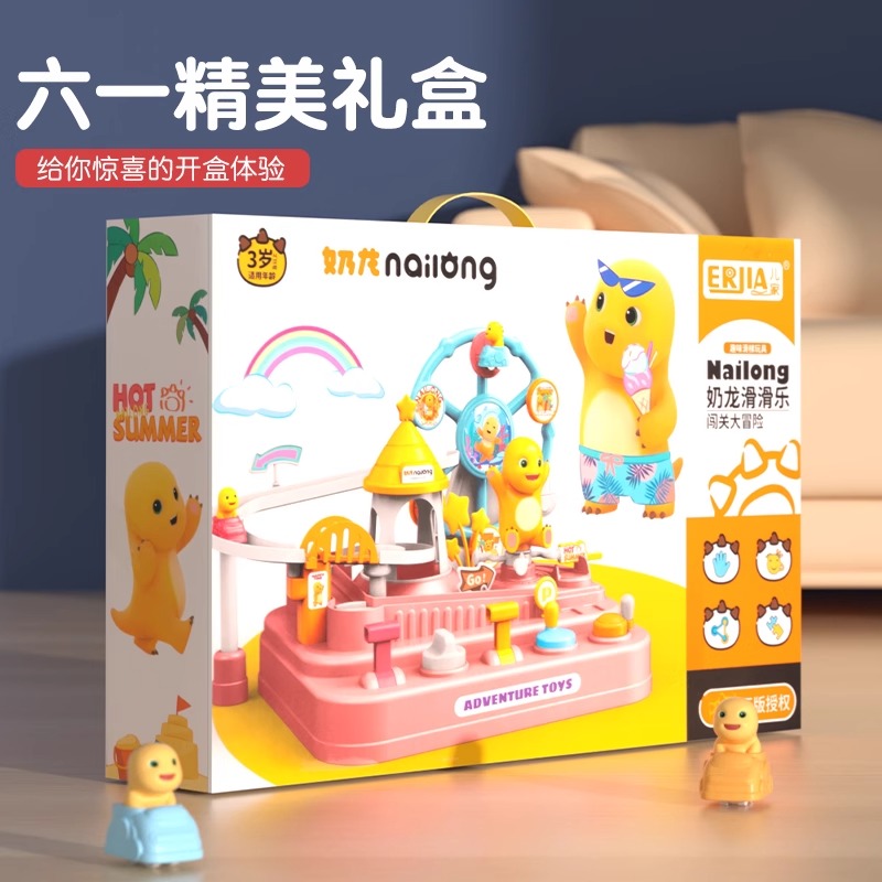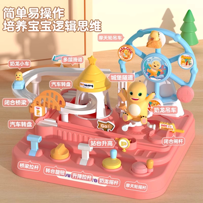 奶龙汽车闯关大冒险生日礼物玩具3到6岁小火车轨道滑滑梯男孩女孩