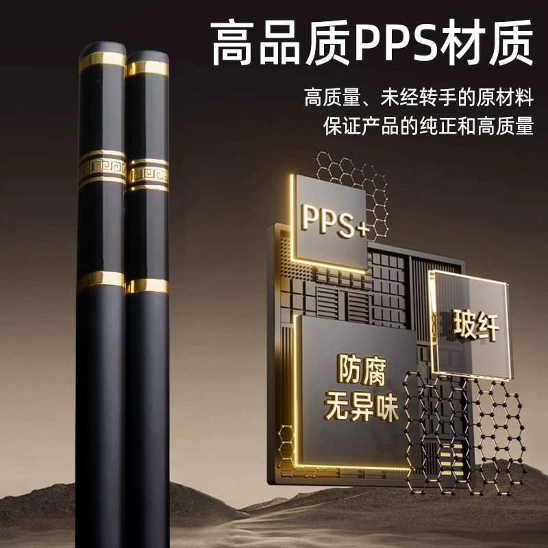 双枪铁木筷子家用2025新款 高档抗菌防霉防滑长油炸耐高温无漆无蜡